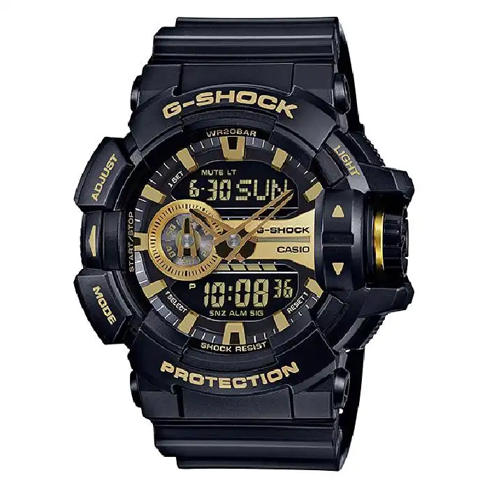 طراحی اسپرت و خشن G-SHOCK، مقاومت ۲۰۰ متری در برابر آب، ضد ضربه و ضد شوک، مقاوم در برابر میدان مغناطیسی، ترکیب رنگ خاص مشکی و طلایی، نمایش آنالوگ و دیجیتال همزمان، قاب و بند رزینی فوقمقاوم، مناسب ورزش، ماجراجویی و استفاده روزمره، کیفیت ساخت بالا از برند معتبر CASIO