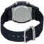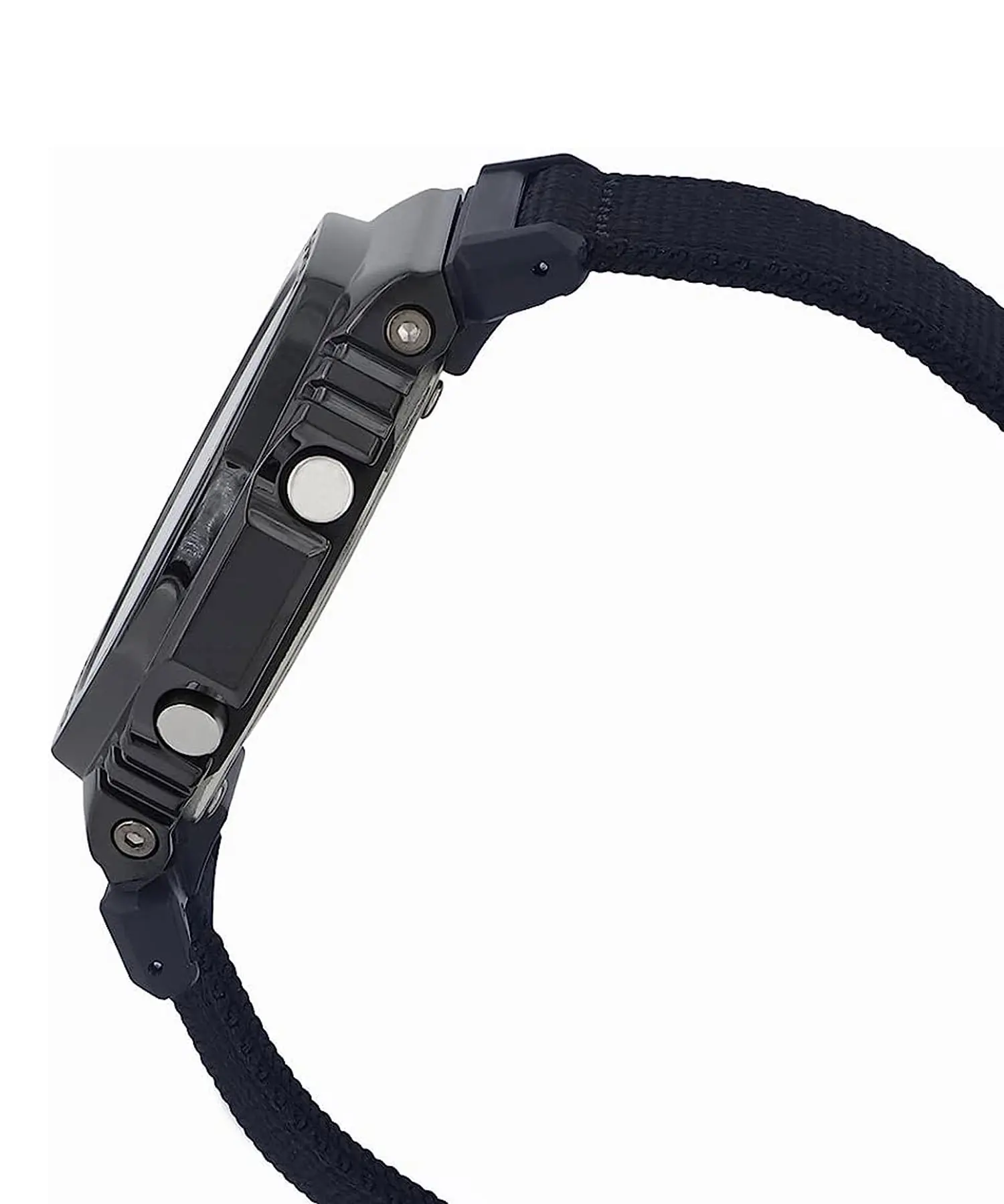 این ساعت از نمایشگر آنالوگ + دیجیتال بهره میبرد و با وزن تنها 72 گرم، نسبت به فریم استیلی بسیار سبک و راحت روی مچ قرار میگیرد. ابعاد استاندارد 49.3 × 44.4 × 11.8 میلیمتر و ضخامت کم آن، باعث شده ظاهر ساعت روی مچ بسیار خوشفرم و جذاب باشد. بند این مدل از جنس پارچه/برزنت مقاوم طراحی شده که علاوه بر دوام بالا، حس اسپرت، تاکتیکال و ماجراجویانهتری به ساعت میدهد.