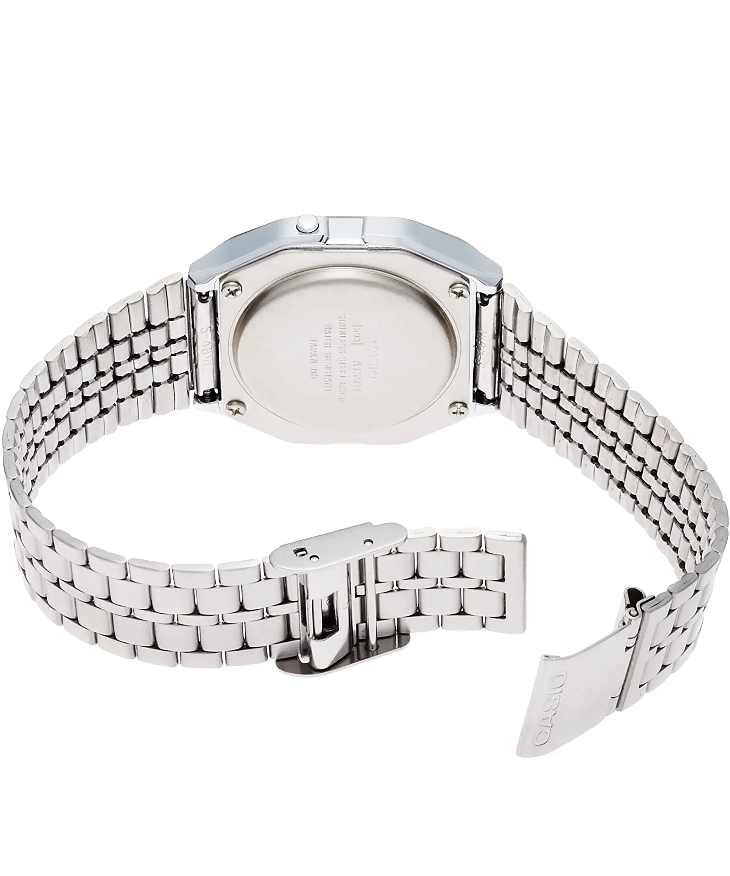 بدنه این ساعت از رزین با روکش کروم ساخته شده و همراه با بند استیل نقرهای، ترکیبی از دوام و زیبایی را ارائه میدهد. فرم قاب مربع | مستطیل جلوهای کلاسیک و مینیمال ایجاد کرده و باعث شده این ساعت با انواع استایل رسمی، اسپرت یا روزمره هماهنگ باشد. همچنین وجود قفل ضامندار امنیت و راحتی بیشتری در هنگام استفاده فراهم میکند.