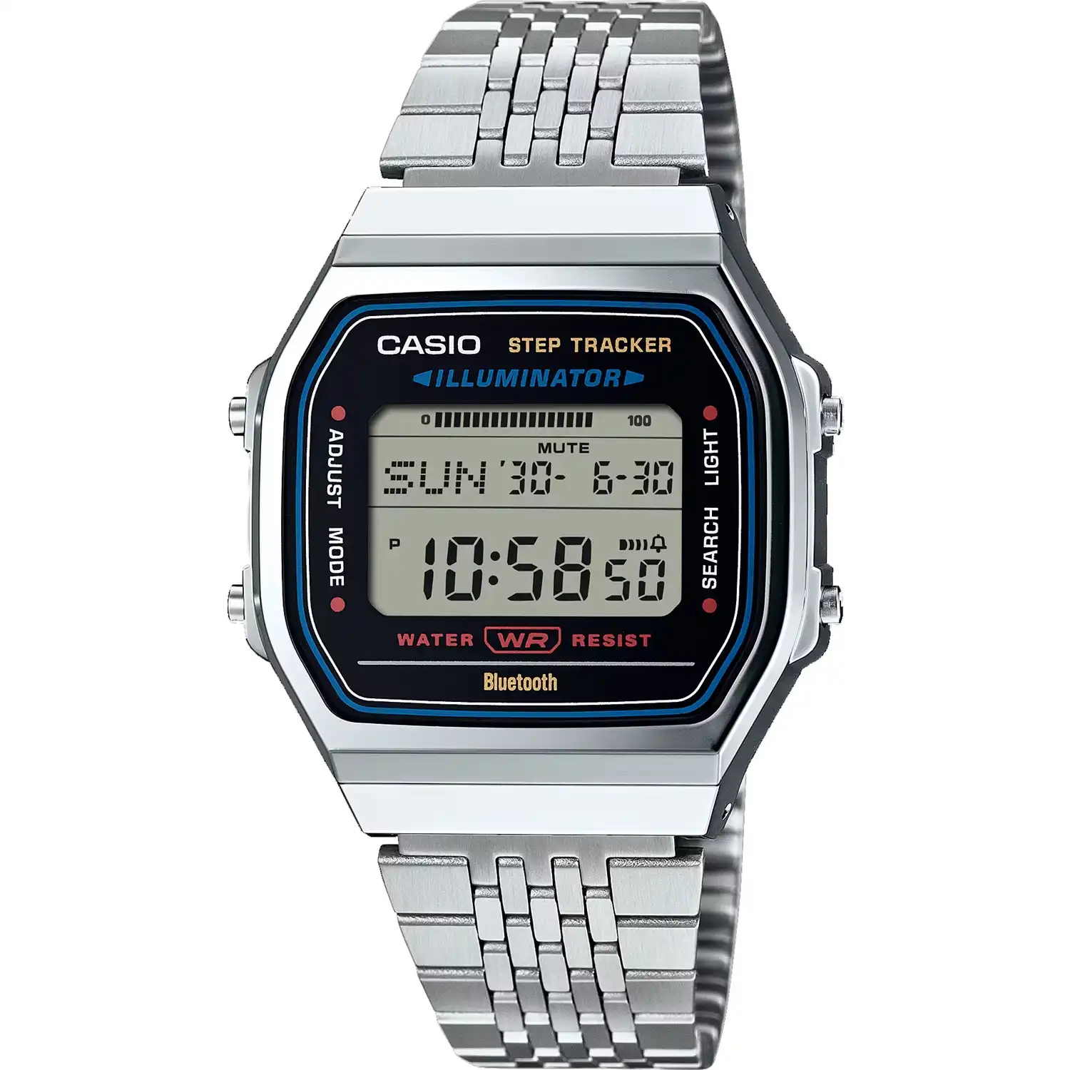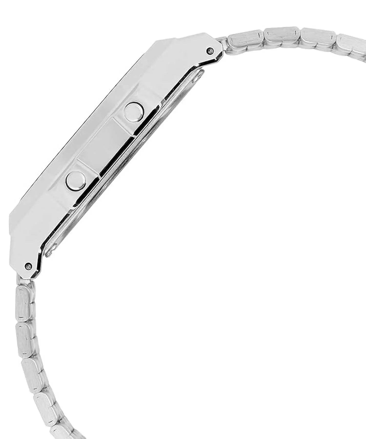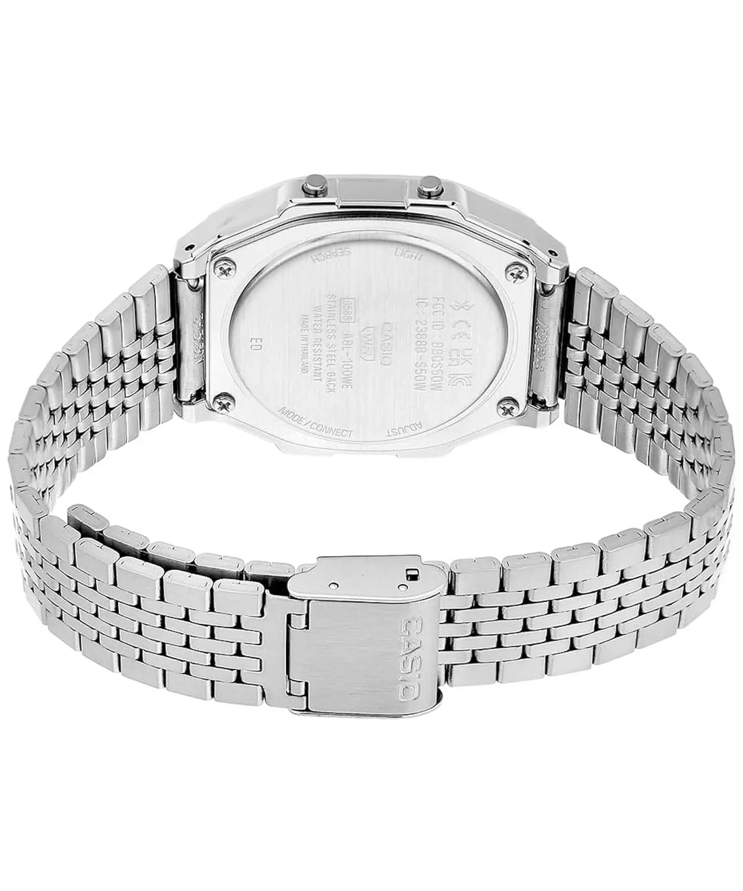 ساعت مچی کاسیو مدل CASIO-ABL-100WE-1ADF یک ساعت دیجیتال یونیسکس با طراحی رترو و الهامگرفته از مدلهای کلاسیک کاسیو است. قاب این ساعت به شکل مربع/مستطیل طراحی شده و از رزین با روکش کروم ساخته شده که ظاهر براق و جذابی ایجاد میکند. بند استیل ضدزنگ نقرهای نیز هماهنگی ظاهری بسیار خوبی با قاب دارد و دوام و راحتی مطلوبی ارائه میدهد.