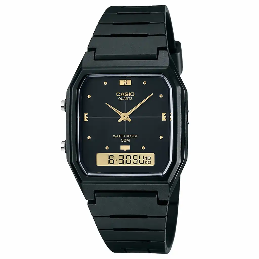 ساعت مچی کاسیو مدل CASIO-AW-48HE-1AV یک گزینه جذاب، ساده و کاربردی برای افرادی است که به دنبال ترکیب کلاسیک آنالوگ با نمایش دیجیتال در قالبی جمع‌وجور و سبک هستند. طراحی مربع/مستطیل مینیمال با بدنه و بند رزین مشکی، این ساعت را به گزینه‌ای مناسب برای استفاده روزمره، اسپرت و حتی استایل‌های نیمه‌رسمی تبدیل کرده است.