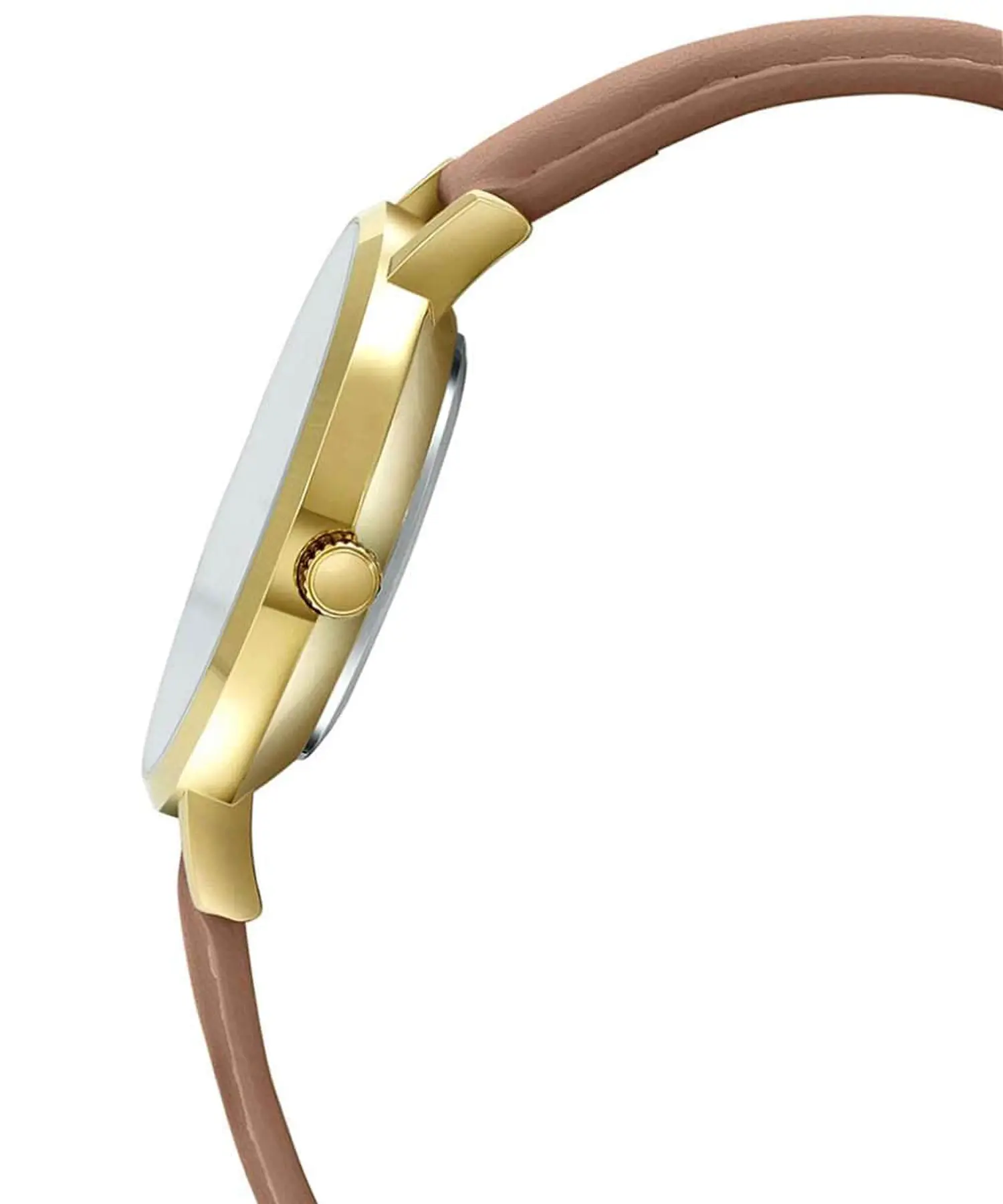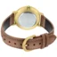 صفحهی قهوهای/مسی ساعت همراه با عقربهها و قاب طلایی، جلوهای شیک و رسمی ایجاد کرده و خوانایی خوبی هم دارد. شیشهی معدنی مقاومت مناسبی در برابر خطوخشهای معمولی دارد. بند چرمی قهوهای نیز علاوه بر ظاهر کلاسیک، روی دست نرم و راحت است و با قفل سگکی ساده بهراحتی تنظیم میشود.