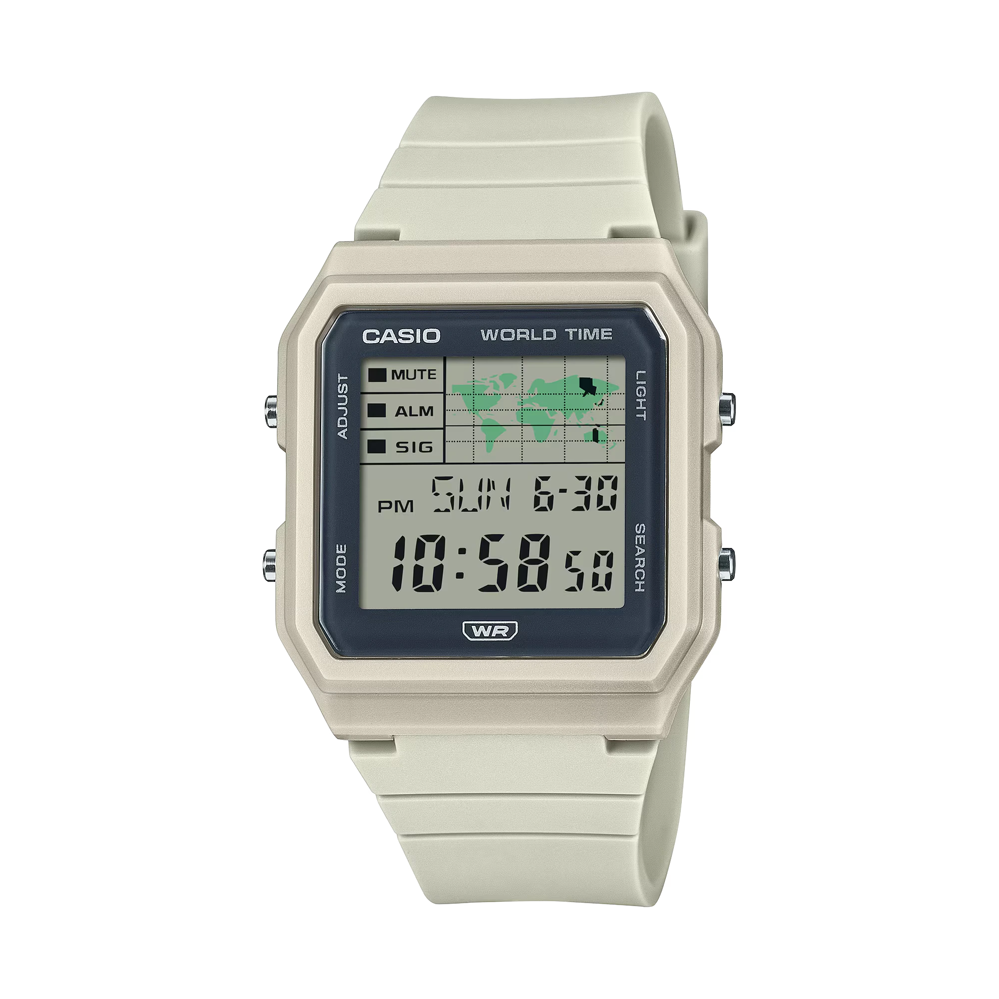 بند ساعت از رزین زیستپایه (Bio-based Resin) ساخته شده که علاوه بر دوام و انعطافپذیری بالا، نشاندهنده توجه کاسیو به محیط زیست است. بند با قفل سگکی ساده طراحی شده و امکان تنظیم آن بین ۱۲۵ تا ۲۰۰ میلیمتر وجود دارد تا روی انواع مچ دست بهخوبی قرار بگیرد.