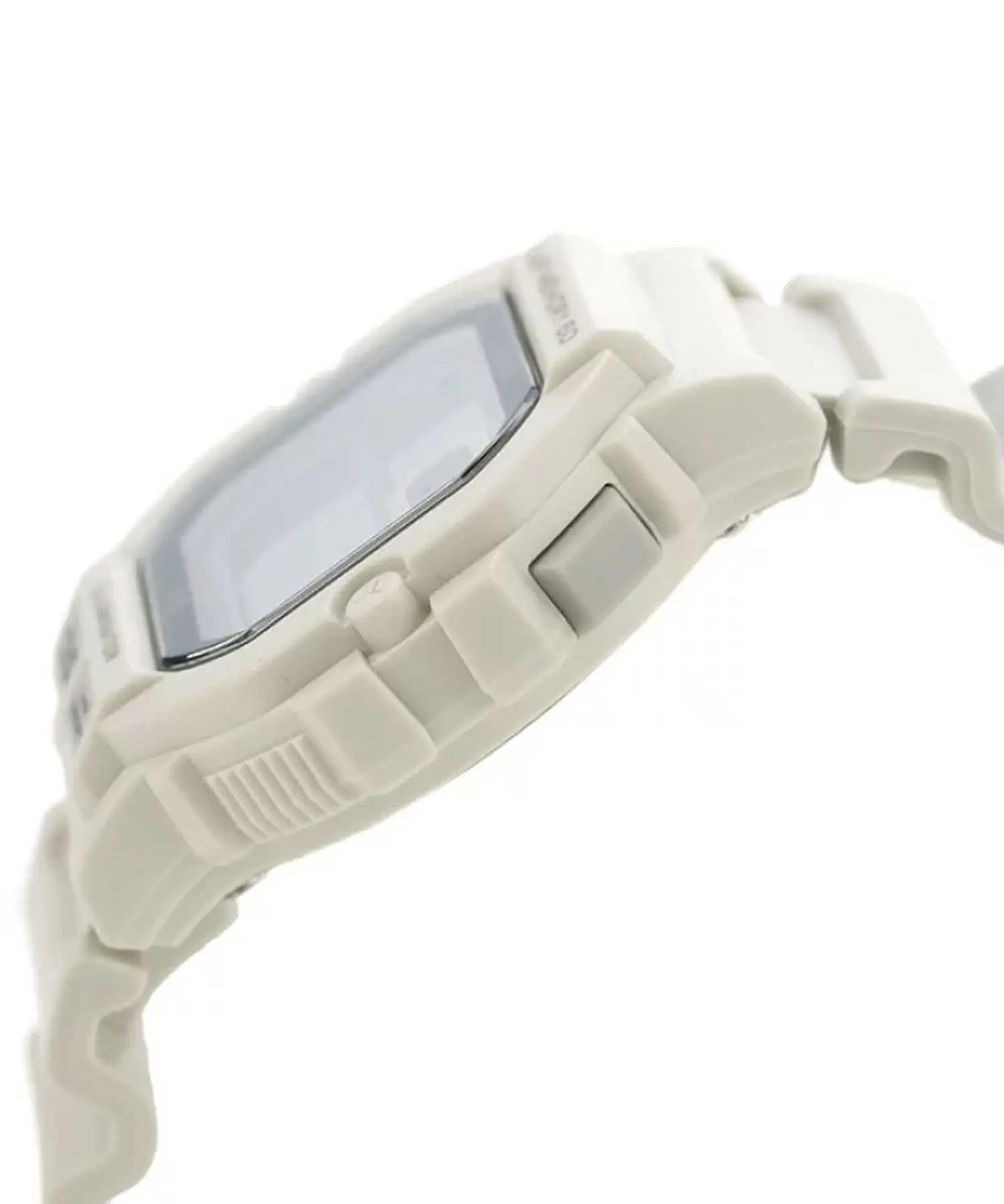 این ساعت با وزن ۴۳ گرم بسیار سبک و راحت است و تمام بخشهای اصلی آن از جنس رزین ساخته شده؛ جنسی که علاوه بر وزن پایین، دوام بالا در برابر ضربه و خطخوردگی ارائه میکند. فرم قاب مربع | مستطیل ظاهر ساعت را اسپرتتر کرده و صفحه دیجیتال با رنگ خاکستری / طوسی خوانایی خوبی در نورهای مختلف دارد.