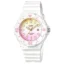 این مدل با قاب گرد رزینی و بدنه سفید طراحی شده و ظاهر شاد و کودکانه آن با صفحهی چند رنگ جذابیت بیشتری پیدا میکند. بند ساعت نیز از جنس رزین سفید بوده و با قفل سگکی ساده روی مچ کودک بهخوبی ثابت میماند.