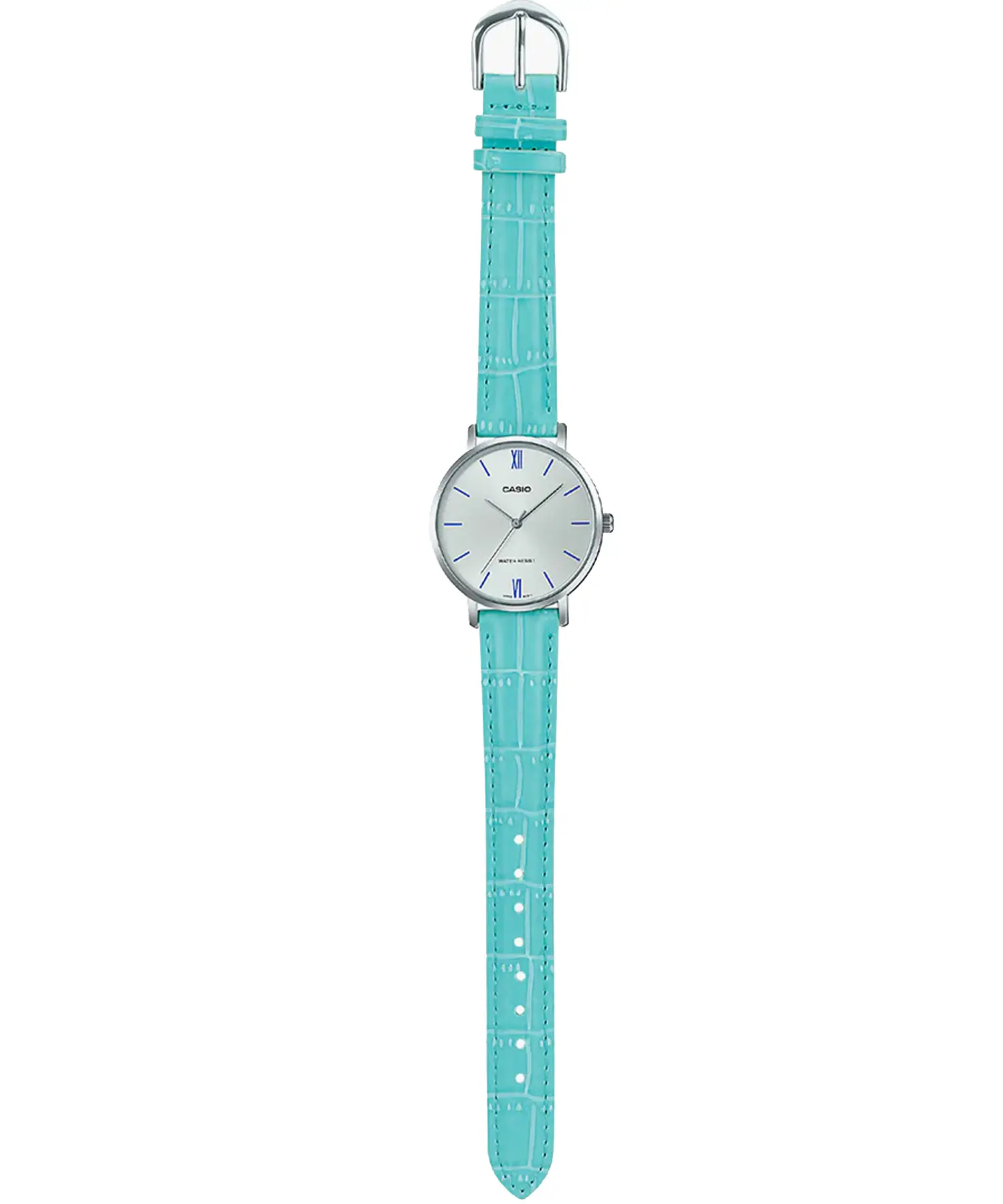 طراحی آنالوگ ساعت با عقربههای باریک و خوانا، جلوهای ظریف و زنانه ایجاد کرده و ضخامت کم 7.9 میلیمتری باعث میشود ساعت روی مچ بسیار راحت و خوشفرم قرار بگیرد. بند چرمی آن در رنگ آبی طراحی شده که ترکیب جذابی با قاب نقرهای ایجاد کرده و ظاهری خاصتر از مدلهای کلاسیک معمول ارائه میدهد.